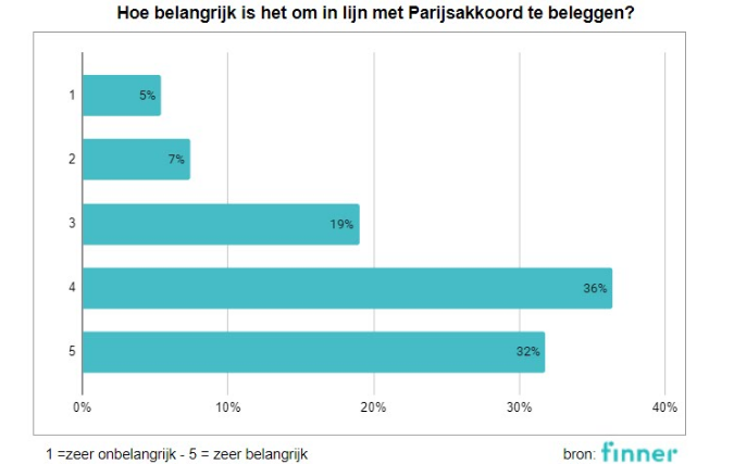 Finner, het grootste vergelijkings- en adviesplatform voor particuliere beleggers in Nederland, heeft onderzoek gedaan naar duurzaamheid bij vermogensbeheerders en hun klanten. Daaruit blijkt dat minder dan 50 procent van de vermogensbeheerders en banken duurzaam belegt. Dit terwijl 70 procent van de klanten duurzaam beleggen (zeer) belangrijk vindt. Bovendien wil 68% beleggen in lijn met het Klimaatakkoord van Parijs. Maar 10% van de onderzochte partijen kan hieraan voldoen.