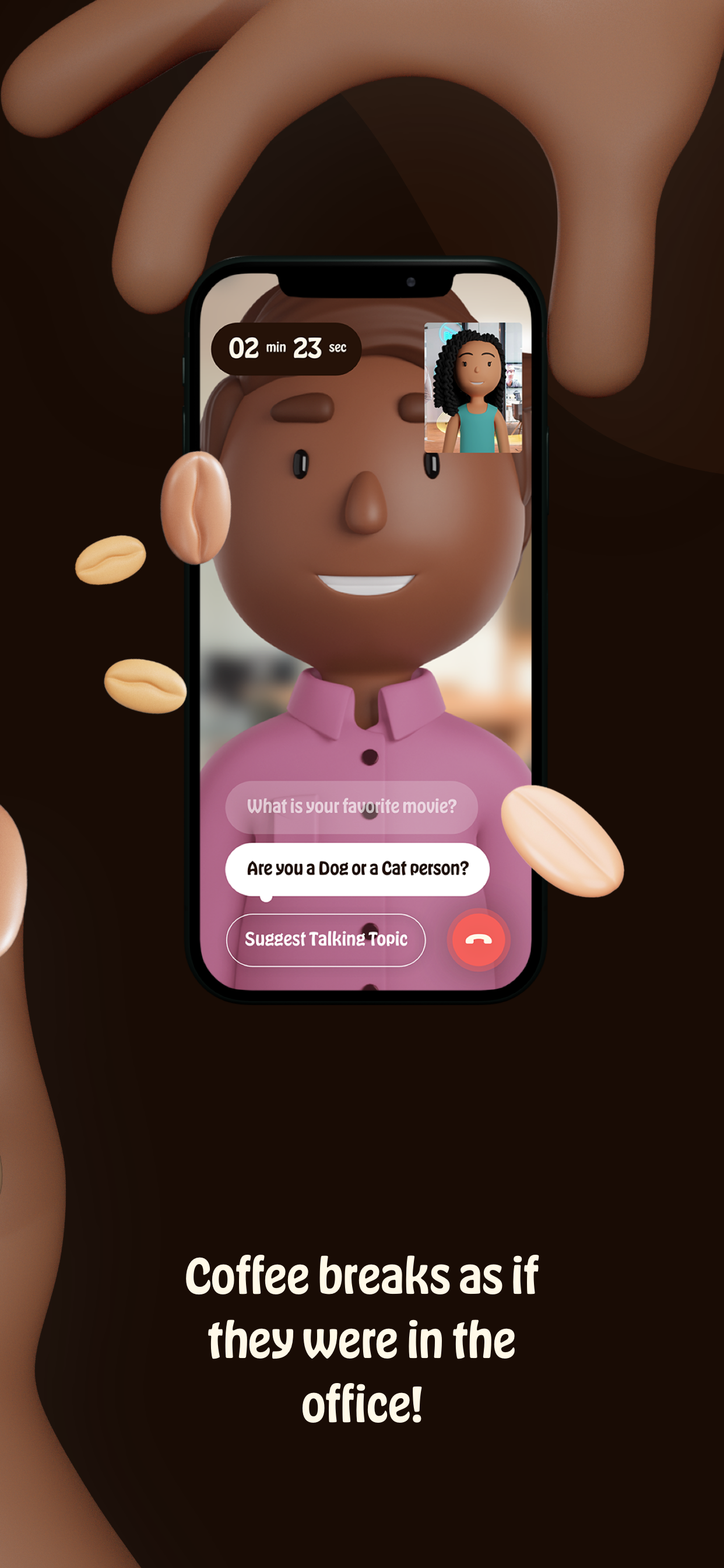 De Nederlands-Zwitserse CoffeeCall-app, die in maart 2021 werd gelanceerd, doet precies dat. Het is een telefoon- en videochat-app die twee mensen binnen dezelfde organisatie met elkaar in contact brengt voor een snelle, virtuele 'koffiepauze' van 10 minuten. De app, beschikbaar op iOS en Android, gebruikt slimme algoritmes om matches te maken.