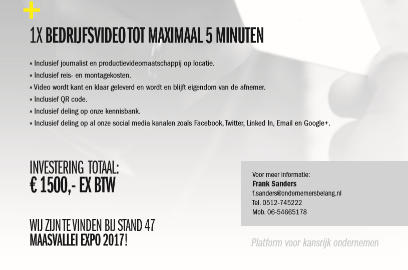 De Maasvallei Expo is belangrijk om alle organisaties in de regio's langs rivier de Maas met elkaar te kunnen verbinden. Daarom is de beurs echt een podium om meer naamsbekendheid te kunnen genereren bij een breed en veelzijdig zakelijk publiek.