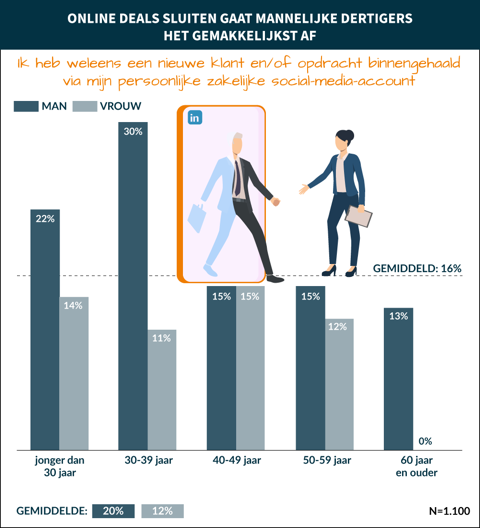 Maar liefst 16 procent van de werkende Nederlanders haalt via zakelijke social media zoals LinkedIn nieuwe deals binnen. Dit blijkt uit onderzoek van prospex onder 1.100 Nederlanders in loondienst, uitgevoerd door PanelWizard. Het aantal succesvolle social sellers lijkt nog groter te kunnen, want maar liefst twee derde van de respondenten vindt digitaal netwerken met vreemden nog ongemakkelijk.