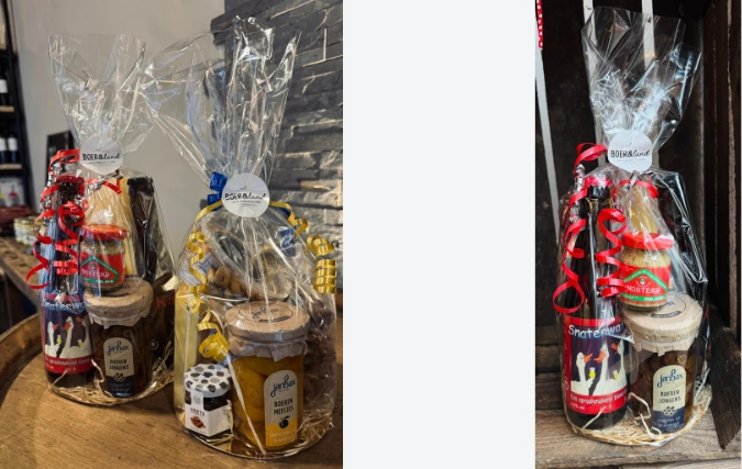 Als ondernemer stel je zelf een kerstbox samen die past bij jouw medewerkers én jouw bedrijf. Denk aan smaakvolle kazen, sapjes, droge worst, chocolade, jam en nog veel meer – allemaal rechtstreeks van de boer. Zo geef je niet alleen een origineel en smaakvol cadeau, maar steun je ook de lokale economie en draag je bij aan korte ketens.