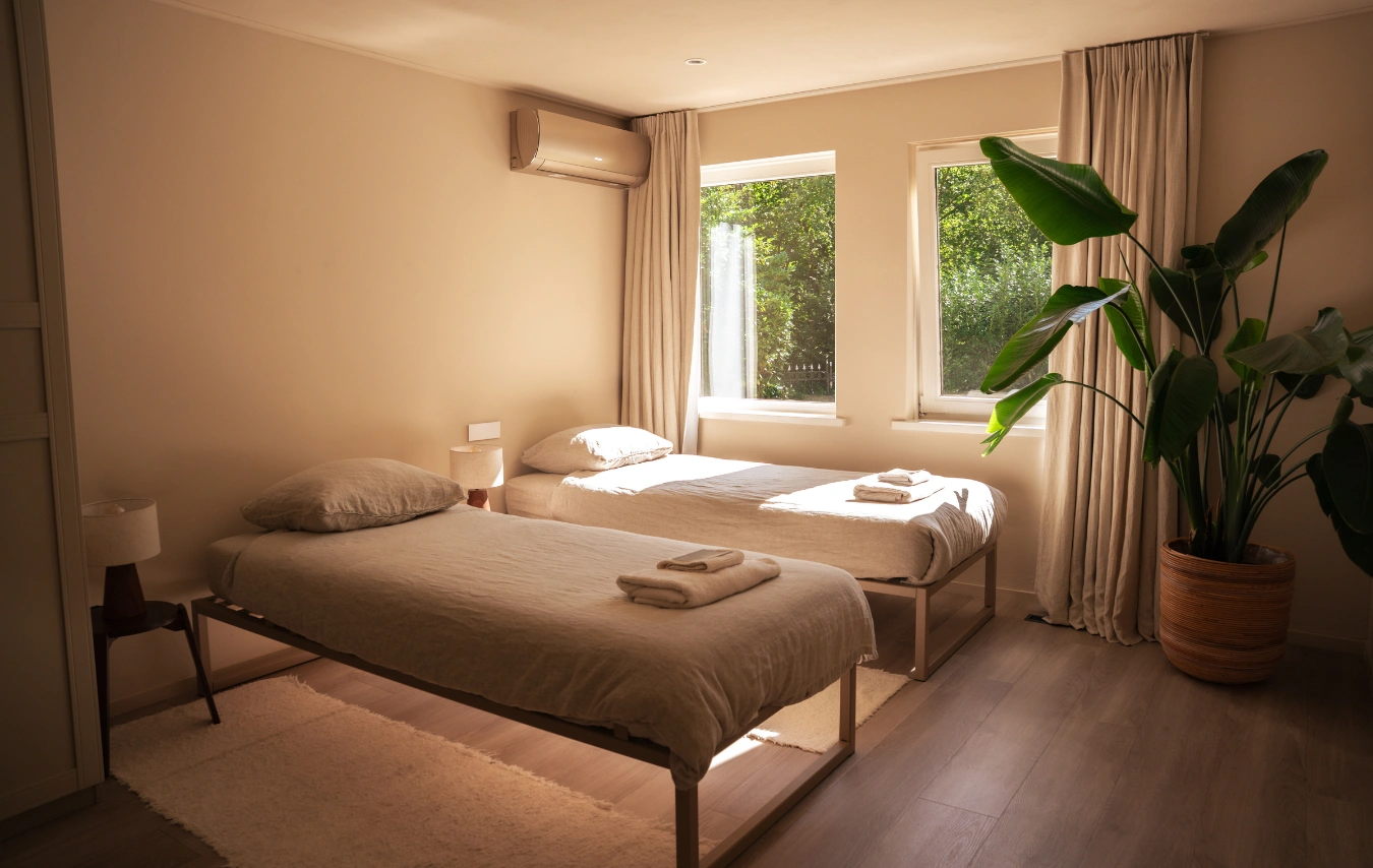 Elke ruimte zowel bij ons als bij onze partners is met zorg gekozen op kwaliteit, rust en comfort, zodat het verblijf perfect aansluit op de sfeer van Grounded Roots.