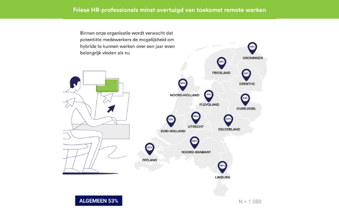 Verder blijkt uit het onderzoek dat maar liefst 63 procent van alle Nederlandse bedrijven vorig jaar hun strategie voor het werven van nieuwe medewerkers aanpasten. Behalve profieleisen bijstellen en tegemoetkomen aan salariswensen, breidde 54 procent van de respondenten hun geografische zoekgebied uit. Een mogelijke verklaring hiervoor is de toekomst van hybride werken: ruim de helft van de Nederlandse HR-professionals verwacht dat dit voor werkzoekenden over een jaar nog even belangrijk is als nu. Waaijenberg: “De reisafstand is niet het enige waarvoor je als werkgever uit je comfortzone moet komen, want de hoge werkloosheid onder bijvoorbeeld 55-plussers maakt dat je écht op een andere manier naar je ideale kandidaat moet kijken.”