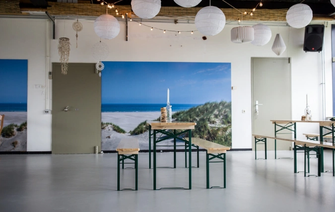 - Ruime mogelijkheden: twee grote zalen (170m² of groter) voor grotere groepen, kleinere vergaderruimtes, yogazaal voor workshops, inspirerende fotolocatie
