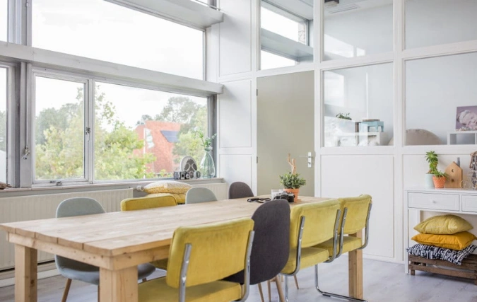 Centraal gelegen in Friesland bieden we verschillende ruimtes: twee grote zalen van 170m² of groter waar je met grotere groepen aan de slag kunt, kleinere vergaderruimtes voor intieme overleggen, een sfeervolle yogazaal voor workshops en mindfulness sessies, en flexibele werkplekken voor wie even rustig wil werken. Ook fotografen weten De Fabriek te vinden als inspirerende locatie voor shoots de combinatie van industrieel en gezellig werkt fotografisch gezien uitstekend.