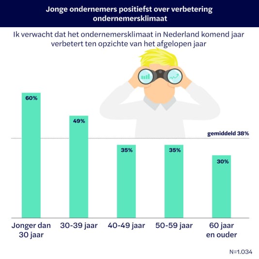 De bovenstaande punten zorgen ervoor dat één op de zes MKB-ondernemers het Nederlandse ondernemersklimaat een onvoldoende geeft. Bijna een kwart (23 procent) geeft slechts een mager zesje. Een verandering hiervan op de korte termijn wordt overigens niet verwacht. Zo stelt 62 procent van de respondenten dat het Nederlandse ondernemersklimaat in het aankomende jaar niet zal verbeteren. Opvallend genoeg denkt 57 procent van de ondervraagden dat het in andere Europese landen makkelijker is om ondernemer te zijn. Mannaerts: “Uit ervaring weet ik dat Nederland een aantrekkelijke omgeving is voor ondernemers. Wel moet de overheid andere beleidsmaatregelen inzetten. Uit ons onderzoek blijkt dat ruim 72 procent van de ondernemers wil investeren, ongeacht de economische omstandigheden. Hierbij staan opleidingen (31 procent) en digitalisering (21 procent) bovenaan. Slechts veertien procent zou investeren in verduurzaming. Strafmaatregelen in de vorm van klimaatwetgeving zullen dit percentage niet doen stijgen, vrees ik.”