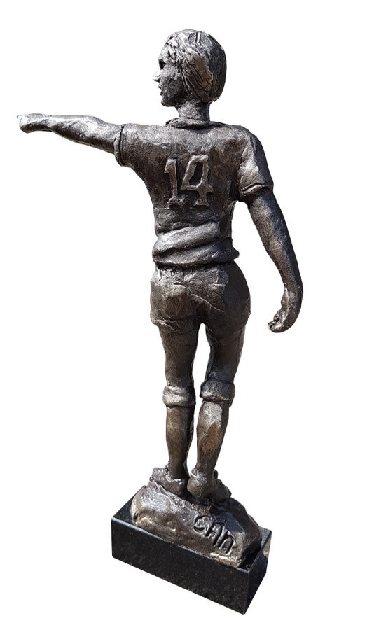 Het sculptuur staat symbool voor de manier waarop Johan op unieke en geheel eigen wijze richting heeft gegeven aan het voetbal en waarop hij Nederlandse historie heeft geschreven. Op een zelfde manier heeft hij 20 jaar geleden ook de koers bepaald voor de Cruyff Foundation welke nog iedere dag wordt gevolgd. Met de aanschaf van dit beeldje, ondersteun je de projecten van de Cruyff Foundation.