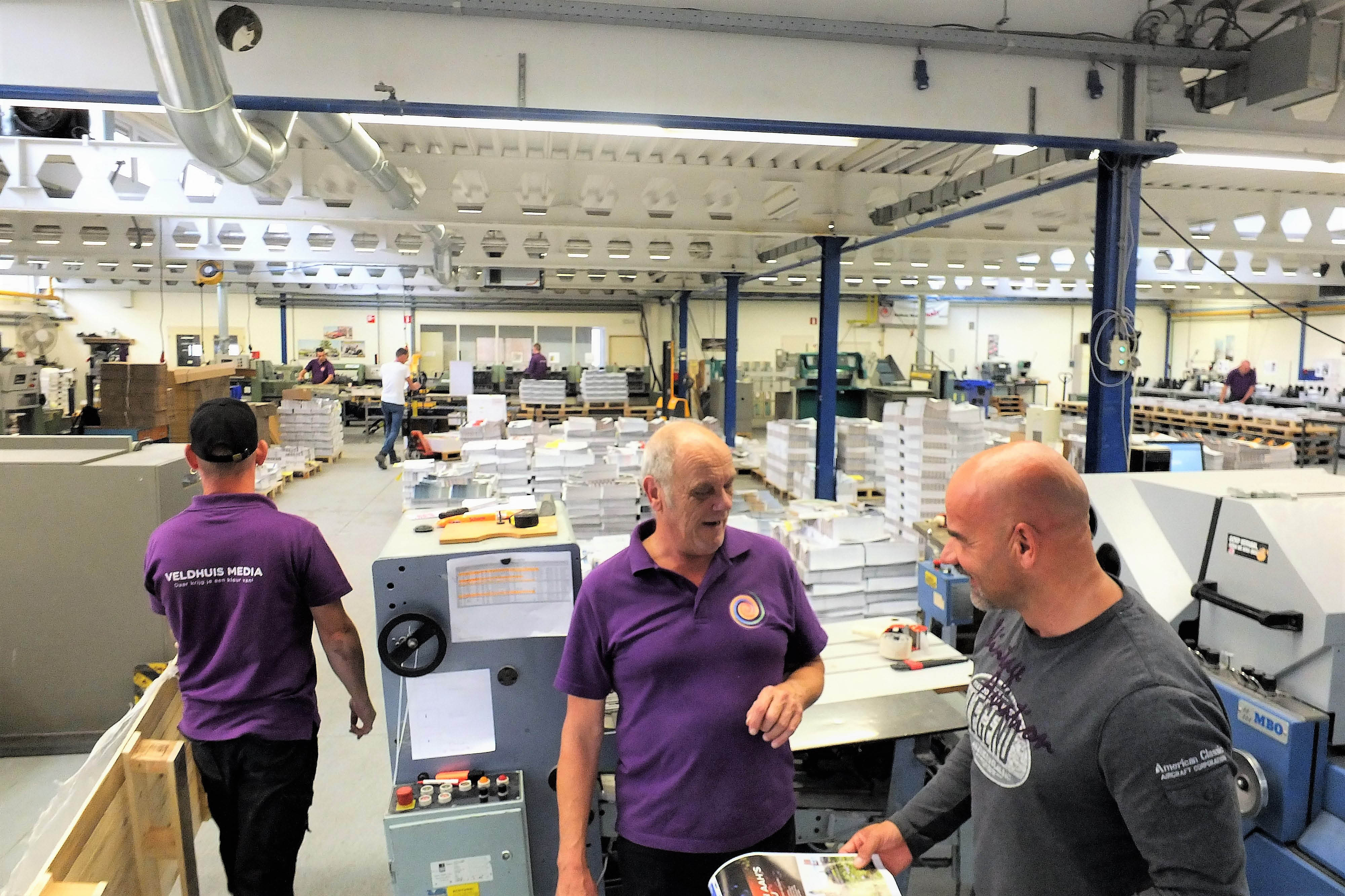 Wie bij Veldhuis Media door het bedrijf loopt, kijkt zijn ogen uit. Drukpersen lopen continu en overal liggen grote stapels bedrukt papier klaar voor verdere verwerking en afronding van een drukproces dat geheel binnen eigen muren plaatsvindt.