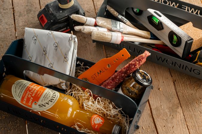 Een Gronings bouwbedrijf koos vorig jaar voor een pakket rond het thema samen bouwen. Iedere medewerker kreeg een gepersonaliseerde toolbox, gevuld met lokale lekkernijen. De toolbox wordt inmiddels thuis en op de werkvloer volop gebruikt – een blijvend aandenken dat nog steeds dagelijks in beeld is.